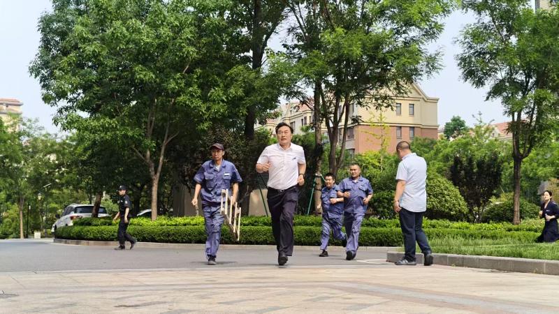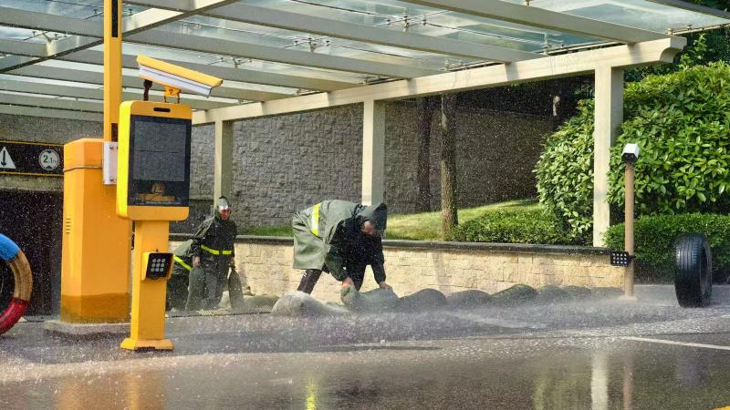 02 防汛及臺風應對演練: 針對夏季汛期及臺風季特點,模擬暴雨積水、設施加固等場景。演練涵蓋沙袋快速封堵、排水設備啟動、高空墜物隱患排查、信息預警發(fā)布等關鍵環(huán)節(jié),確保極端天氣下應急響應工作有序推進。
